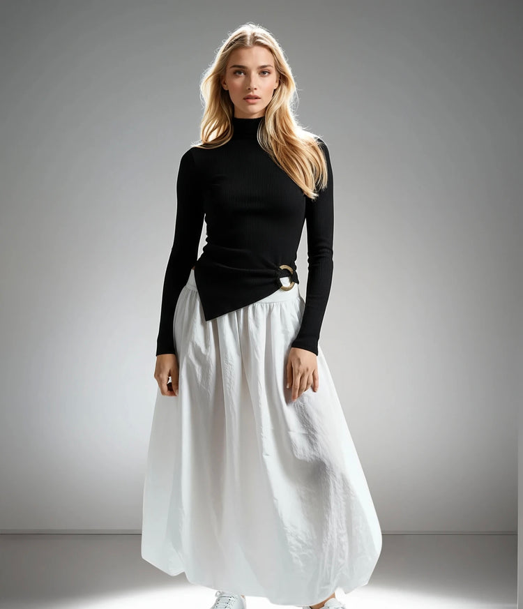 The unique balloon shape adds a playful touch, making it perfect for both casual outings and special occasions. Pair it with a fitted top for a chic contrast, or layer it with a cropped sweater for a more relaxed vibe. The classic white color ensures versatility, allowing you to mix and match with ease.